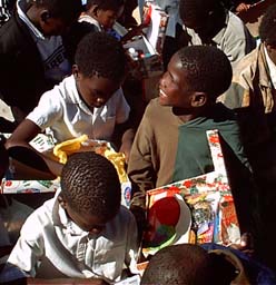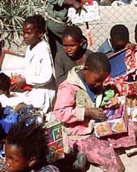 Seeing shoe boxes filled with Christmas presents was a humbling experience when Brandon Lilly was in Botswana, Africa. Here is an example of where your boxes go… look at the happy faces!